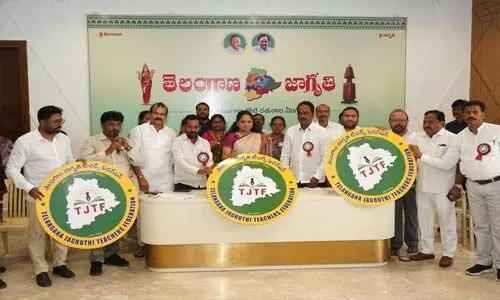 టీచర్లకు ఇవ్వాల్సిన పిఆర్సితో పాటు పెండింగ్ డి.ఎలను వెంటనే చెల్లించాలని తెలంగాణ జాగృతి అధ్యక్షురాలు కల్వకుంట్ల కవిత డిమాండ్ చేశారు. టీచర్ల గురించి గొప్పగా మాట్లాడే సిఎం కనీసం వారికి సమయానికి జీతాలు కూడా చెల్లిచంటం లేదని మండిపడ్డారు. తెలంగాణ జాగృతి ఆధ్వర్యంలో తెలంగాణ జాగృతి టీచర్స్ ఫెడరేషన్(టిజెటిఎఫ్)ను కొత్తగా ఏర్పాటు చేశారు. ఫెడరేషన్ లోగోను శనివారం జాగృతి కార్యాలయంలో కవిత ఆవిష్కరించారు. ఈ సందర్భంగా ఆమె మాట్లాడుతూ, తెలంగాణ జాగృతి టీచర్స్ ఫెడరేషన్ను ఏర్పాటు చేయాలనే ఆలోచన 12 ఏళ్ల క్రితం నాటిదేనని చెప్పారు. అయితే ఇన్నాళ్లకు సమయం వచ్చిందన్నారు.