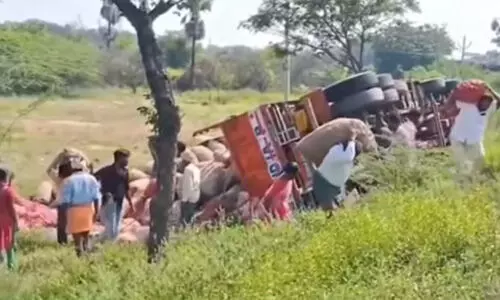అమరావతి: : నల్గొండ జిల్లా ఎపి లింగోటం గ్రామం లోరోడ్డు ప్రమాదం జరిగింది. యూటర్న్ తీసుకుంటున్న బస్ ను వెనుక నుంచి లారీ ఢీకొంది. ఉల్లిపాయల లోడ్ తో వెళ్తున్న లారీ అదుపు తప్పి బోల్తా పడడంతో ఈ ఘటన చోటు చేసుకుంది. ఈ ప్రమాదంలో ముగ్గురు విద్యార్థులకు స్వల్ప గాయాలయ్యాయి. క్షతగాత్రులను ఆస్పత్రికి తరలించారు. స్థానికులు సమాచారం మేరకు పోలీసులు ఘటనా స్థలానికి చేరుకుని సహాయక చర్యలు చేపట్టారు.