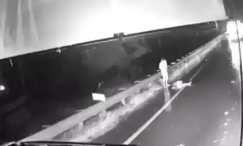 అమరావతి: కర్నూల్ బస్సు ప్రమాదం రోజు జరిగిన సంఘటన షాకింగ్ విజువల్స్ వెలుగులోకి వచ్చాయి. కర్నూల్ బస్సు ప్రమాదం కంటే ముందు జరిగిన బైక్ ప్రమాద దృశ్యాలు బయటకు వచ్చాయి. ఓ బస్సు సిసి టివిలో రోడ్డు పక్కన శివ చనిపోయి మృతదేహం కనిపించగా అతని పక్కన నిలబడి స్నేహితుడు స్వామి కనిపించాడు. ఆ సమయంలో బైక్ రోడ్డు మధ్యలో పడి ఉండడంతో వాహనాలు మెల్లగా వెళ్లాయి. రోడ్డుపై పడి ఉన్న బైక్ ను కావేరీ ట్రావెల్స్ బస్సు ఢీకొట్టడంతో మంటలు చెలరేగాయి. ఈ ప్రమాదంలో 19 మంది మృతి చెందిన విషయం తెలిసిందే. బస్సు డ్రైవర్ మాత్రం మద్యం సేవించలేదు.