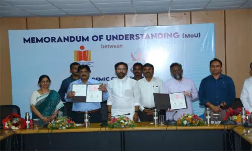 మన తెలంగాణ/హైదరాబాద్: ఇండియన్ ఇన్స్టిట్యూట్ ఆఫ్ టెక్నాలజీ (ఐఐటీ) హైదరాబాద్, ములుగు జిల్లాలోని సమ్మక్క-సారక్క కేంద్రీయ గిరిజన విశ్వవిద్యాలయం మధ్య శుక్రవారం అవగాహన ఒప్పందం కుదిరింది. ఐఐటీ హైదరాబాద్ డైరెక్టర్ ప్రొఫెసర్ బి.ఎస్. మూర్తి, వైస్-చాన్సలర్ ప్రొఫెసర్ వై.ఎల్.శ్రీనివాస్ ఈ ఒప్పందంపై సంతకాలు చేశారు. ఈ కార్యక్రమానికి హాజరయిన కేంద్ర మంత్రి కిషన్రెడ్డి మాట్లాడుతూ.. రాష్ట్రంలో గిరిజన విశ్వ విద్యాలయం ఏర్పాటుకు కేంద్ర ప్రభుత్వం ఆమోదం తెలిపిందని గుర్తు చేశారు. ఈ విశ్వ విద్యాలయాన్ని ములుగు జిల్లాలో ఏర్పాటు చేయాలని రాష్ట్ర ప్రభుత్వం చేసిన వినతికి ప్రధాని నరేంద్ర మోడీ సుముఖత వ్య క్తం చేశారని ఆయన చెప్పారు. కేంద్ర మంత్రి కిషన్ రెడ్డి, డీఆర్డీఓ మాజీ చై ర్మన్ డాక్టర్ జి.సతీష్రెడ్డి సమక్షంలో ఈ ఒప్పందం ద్వారా జాతీయ విద్యా విధానానికి అనుగుణంగా కొత్త పాఠ్య ప్రణాళికలను రూపొందించనున్నారు.